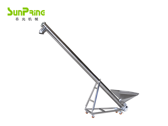 設(shè)備全部為不鏽鋼材(cái)質,料筒采用(yòng)無縫不鏽鋼管,不鏽鋼支架可以調節上(shàng)料(liào)管(guǎn)道的(de)高度。可調高度為2-4米左右,螺杆軸和螺旋葉片采用不(bú)鏽鋼材(cái)質;電機控製開關一般放在拌(bàn)粉機或(huò)者主機控製櫃(guì)上;帶有腳(jiǎo)輪(lún),方便移動。