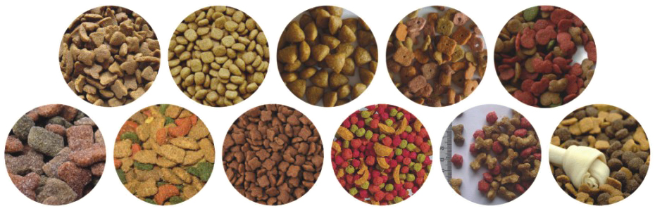 3. 產品: 各種形狀狗糧、貓糧、鳥食,魚飼料等,根據不同的配方,工(gōng)藝做出不同的(de)寵物食品