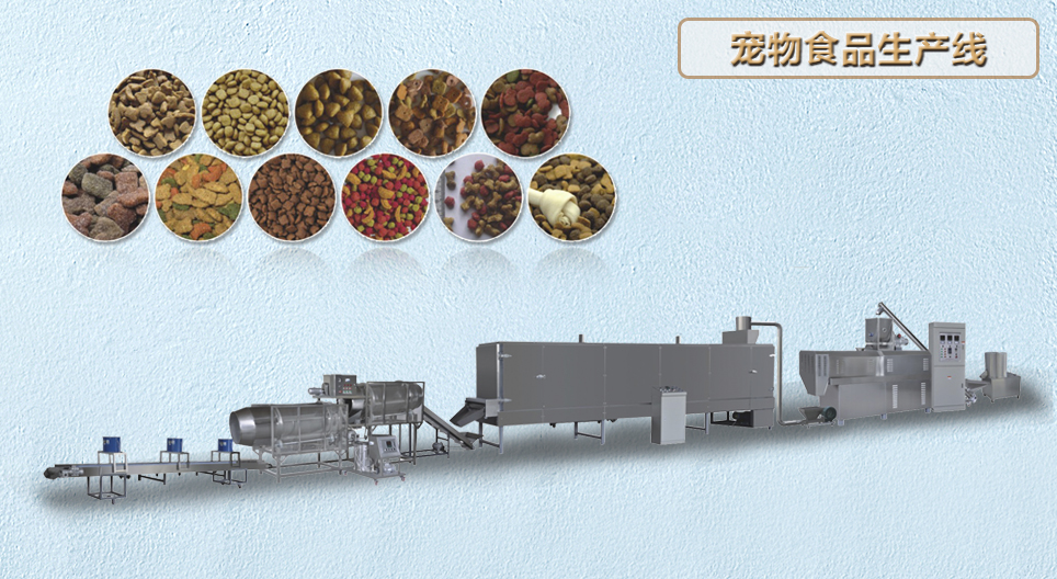 寵物食品加工設備賦於寵物食品以新穎的形狀(zhuàng),獨特的口味和(hé)色彩,並且以最科學的營養配比和易於消化等特(tè)點來(lái)適應不斷發展的寵(chǒng)物食(shí)品市場。我(wǒ)公司多年來(lái)在(zài)擠出機方麵的努力(lì)取得的技術優勢完全(quán)體現在寵物(wù)食品生(shēng)產線上。操作簡單、易學、精確的參數控製,確保產品在特定的溫度(dù)、壓力、濕度和時間(jiān)裏完成。合理的結構設計(jì),特殊的材質,快速的(de)自潔性能確保機械的穩定性及(jí)便於維修。豐富多采的形狀和口味適應各種寵物食品的要求。